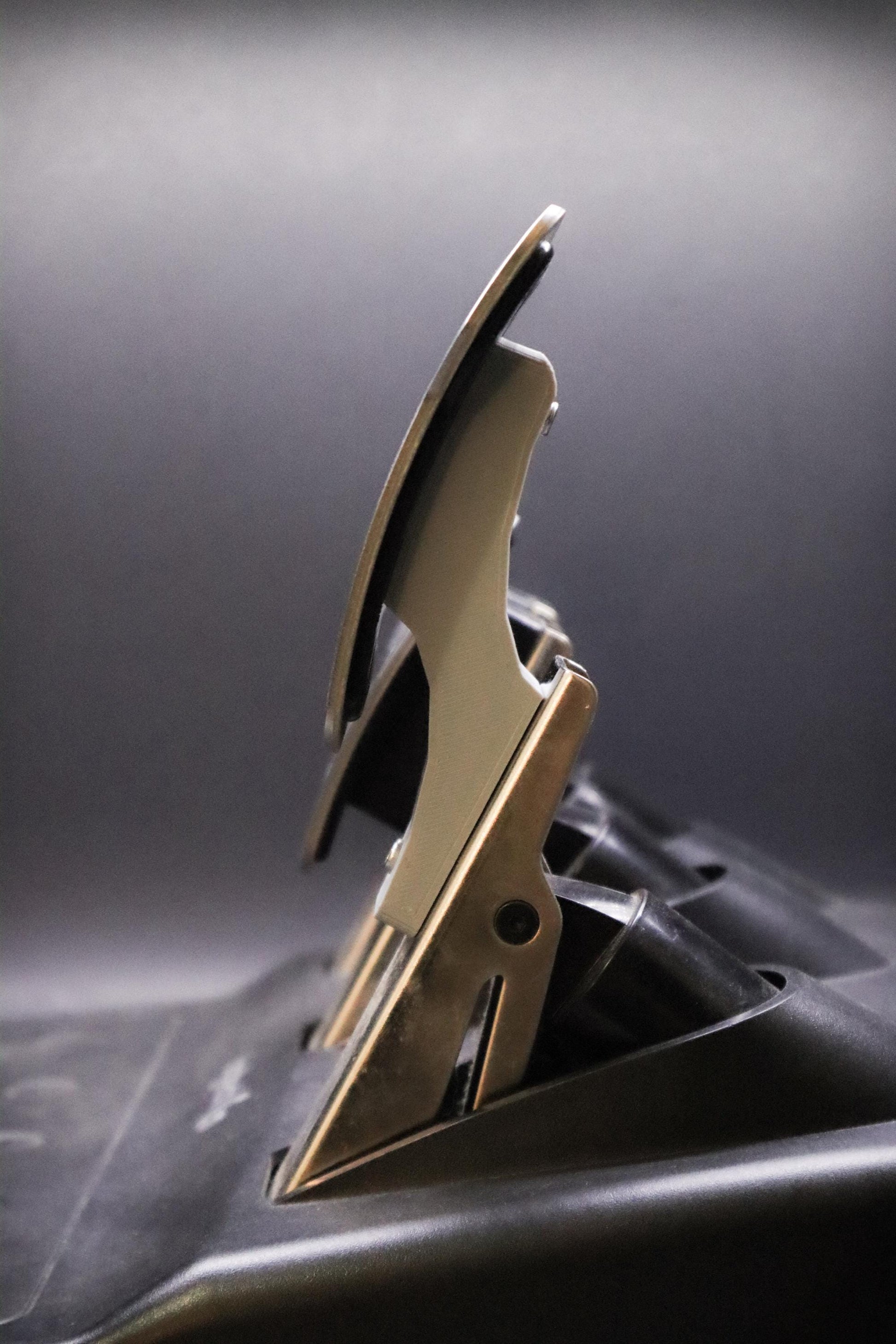 A 3D printed adapter plate to extend and raise Logitech Driving Force pedals. This is an upgrade from the factory spacers, which are also made of plastic. The kit will replace these and mount in the same fashion.