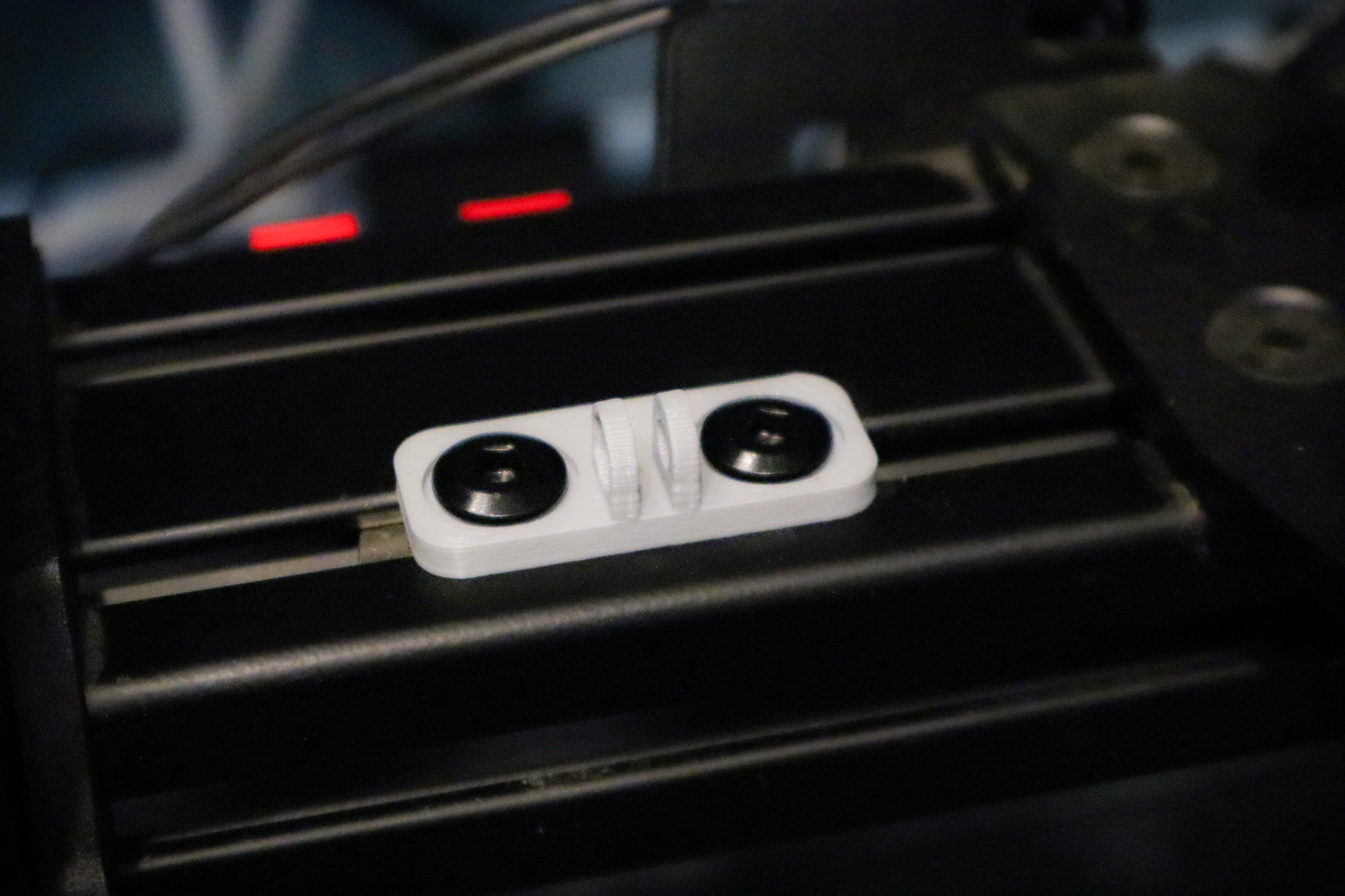 Plug and play RGB matrix with 8x8 LED with tinted plexiglass window. Uses USB Type C. Fits 8020 setups and some DD wheelbases (Fanatec CSL DD pictured). Hole spacing for wheelbase mount is 55mm and fits both M6 and M8 hardware.